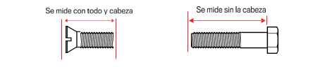 Se miden primero su diametro y despues por su largo, sus medidad se dan en pulgadas (std.) o en metrico (milimetrico) y se toma de solo su cuerpo sin la cabeza, con excepcion de los que son de cabeza plana.